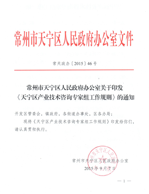 近日,在《常州市天寧區(qū)人民政府關(guān)于成立天寧區(qū)產(chǎn)業(yè)技術(shù)咨詢專家組的通知》中,我司副總經(jīng)理仲旭峰被常州市天寧區(qū)人民政府聘為天寧區(qū)第一屆產(chǎn)業(yè)技術(shù)咨詢專家。