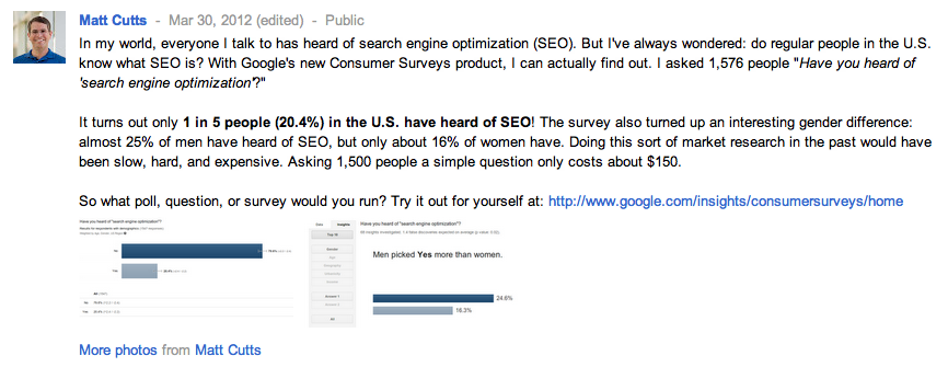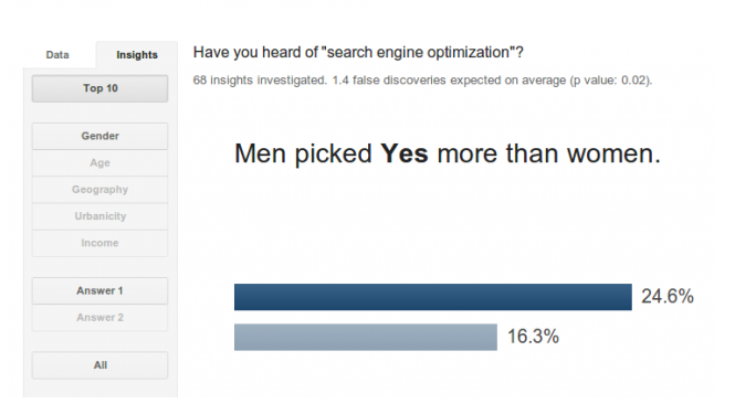 2016/10/18| 閱讀次數(shù):652 最近Google頻頻出新產(chǎn)品,而最近剛剛推出的Google Consumer Surveys給我的第一感覺就是這玩意做外貿(mào)的朋友用的上,我不知道我的讀者里有多少人給自己公司的產(chǎn)品做過Surveys的?我估計(jì)不會太多,但這玩意太有必要了。且不談海外客戶,光是我們做國內(nèi)的客戶,都無法了解自己同胞骨子里到底是怎么想的,更別說海外客戶了,完全是兩種邏輯思維。所以一切朝數(shù)據(jù)看齊,數(shù)據(jù)不會欺騙我們。