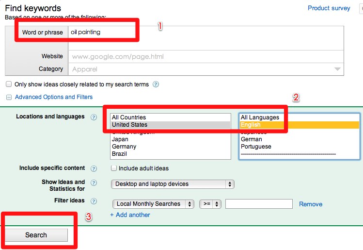 要理解如何利用這些工具來找潛在的外貿(mào)客戶,首先我們要弄清楚谷歌的關(guān)鍵詞工具到底如何用, 簡單的來說你只需要在Google Keyword Tool中輸入一個(gè)關(guān)鍵詞,那么系統(tǒng)會自動列出眾多的相關(guān)和相似的關(guān)鍵詞,而這些關(guān)鍵詞都是實(shí)實(shí)在在有用戶搜索過的,也就是說是用戶的語言。有好幾個(gè)人在我博客留言說是做油畫的,那我就用油畫來做這次的案例,首先我們在關(guān)鍵詞工具中輸入油畫 ‘Oil Painting‘ ,這是所有做油畫人的商人能想到的第一個(gè)關(guān)鍵詞。