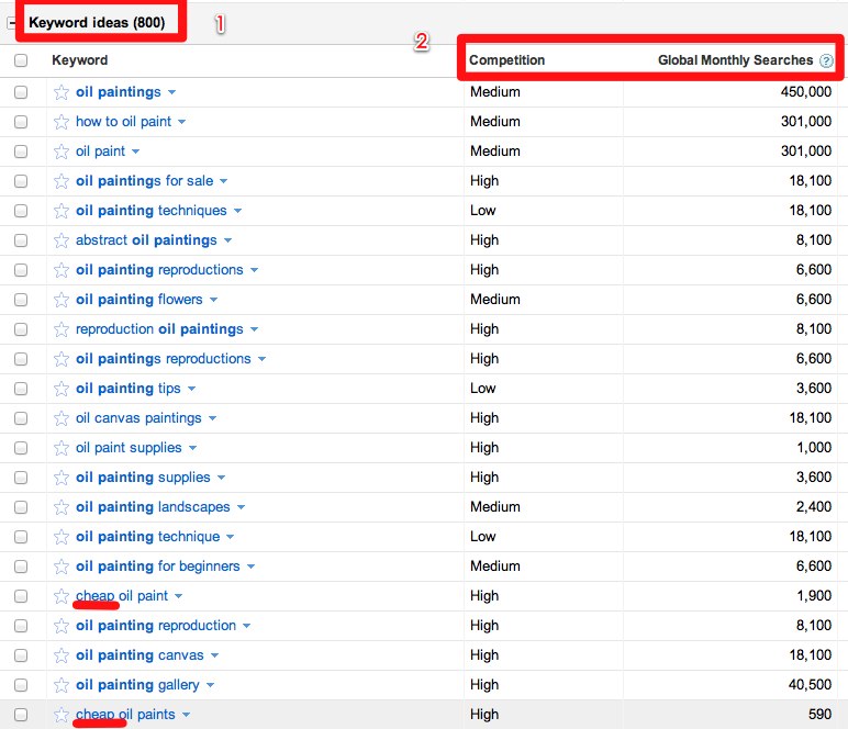 另外需要注意的是我標(biāo)注紅線的地方,兩個(gè)詞組都出現(xiàn)了Cheap這個(gè)詞,同時(shí)搜索也不高,兩個(gè)都沒有超過2000,但競爭度卻都為High,與上面的Oil Painting Technique有18000搜索量相比,帶Cheap的反而競爭度是High, 這更說明這個(gè)詞是有很多人爭的。很多做油畫的朋友拉不下臉說自己的產(chǎn)品Cheap, 畢竟油畫聽起來還是屬于高端的貨色,但是用戶未必這么思考,我在新西蘭做油畫,網(wǎng)絡(luò)銷售做到了全國第二,我可以很明確的說,對于大部分的老外來說,他們需要的只是一張能掛在墻上當(dāng)裝飾的畫而已。