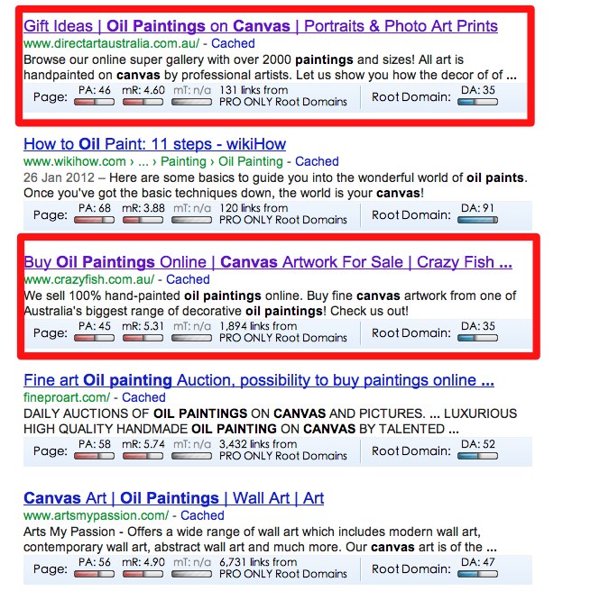 一眼掃過去,很明顯紅框中的兩家油畫商城域名都是.com.au 也就是澳洲的網(wǎng)站。點(diǎn)進(jìn)去一看,如果你是做油畫的,一眼就能看出他的產(chǎn)品肯定是從中國進(jìn)的,這代表什么?很簡單,你可以把他變成你的客戶。油畫這行,如果你想賣給海外的畫廊,那希望很渺小,但如果你想賣給這種生意人,還是很簡單的。