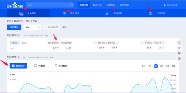 在做一些關(guān)鍵詞分析的時候我們會經(jīng)常用到百度指數(shù)來分析,另外從百度指數(shù)分析還可以了解PC端和移動端對同一個關(guān)鍵詞不同的搜索趨勢,便于我們針對不同的關(guān)鍵詞對不同的設備進行優(yōu)化。還有一個作用就是可以利用百度指數(shù)來挖掘長尾關(guān)鍵詞??傊俣戎笖?shù)對掛見此分析提供重要的參考依據(jù)。