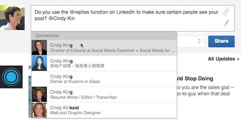 玩微博的人對(duì)@功能最熟悉不過(guò)了,“轉(zhuǎn)發(fā)微博并@三個(gè)好友就有機(jī)會(huì)得到iPhone 5S一臺(tái)”,這種情況下我們@的人一般都是好朋友或者僵尸粉,很少去打擾陌生人。在LinkedIn,如果想和陌生人建立起穩(wěn)定的連接關(guān)系,那就要學(xué)會(huì)正確使用@功能,一方面表示關(guān)心和在意,另外如果對(duì)方長(zhǎng)期不登陸,系統(tǒng)會(huì)發(fā)一封郵件告訴對(duì)方有人@ta,保持連接。