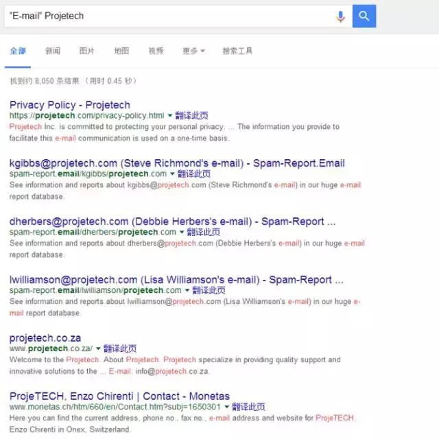 有時候也會遇到打不開客戶公司網(wǎng)址的情況,那么這時候就需要結(jié)合谷歌搜索客戶的其他信息,方法是英文引號郵箱+客戶的域名:示范如下”E-mail”zumtobel-group.com,如下圖所示: