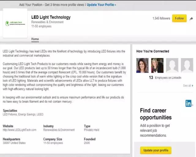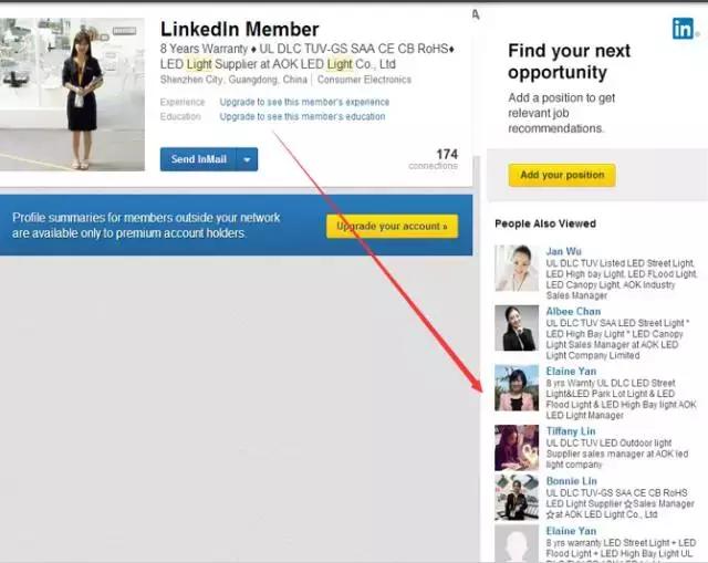 如果你的目標客戶是領(lǐng)英會員,怎么要如何深挖他的個人信息來加他為好友呢?我們以LED light為例: