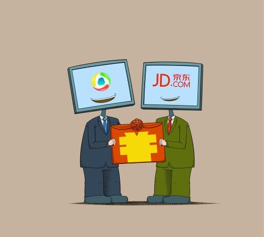 在入股搜狗、大眾點評、嘀嘀打車后,騰訊昨日宣布,以2.15億美元的代價大手筆入股京東,并將成為京東第三大股東,而電商大佬京東將獲得在移動互聯(lián)時代彌足珍貴的微信和手機QQ端一級入口,這將大大增加京東的客流量。