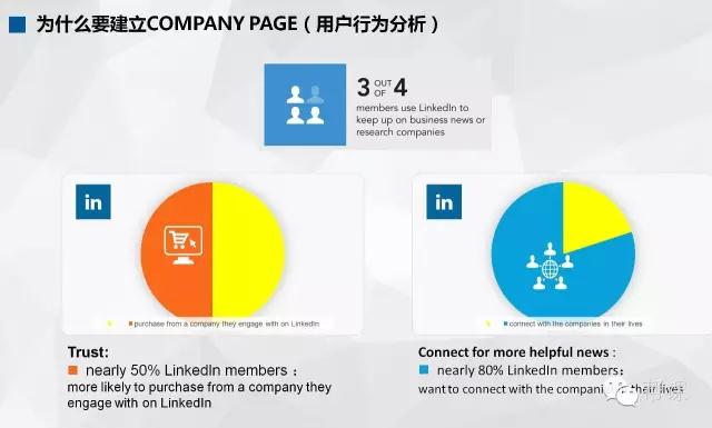 2) 一個專業(yè)的公司頁面(Company Page),能增加買家的信任,促進未來的轉(zhuǎn)換(狀態(tài)更新,讓客戶時時能了解你公司的優(yōu)勢,情況等)看下面的這組數(shù)據(jù):