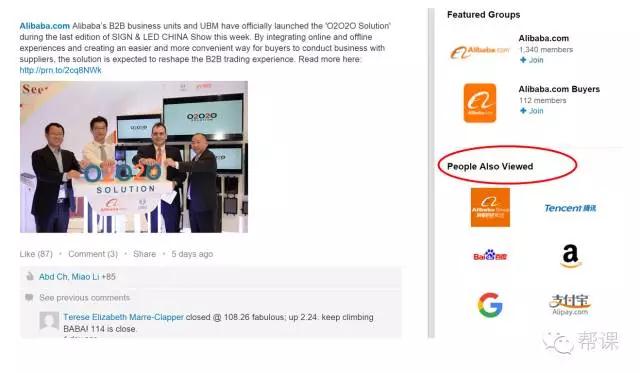 (2)潛在客戶來到了你同行的Company Page, 你不會出現(xiàn) (反之,哈哈,如果你做了Company Page, 就算客戶直接來到了你競爭對手或同行的Company Page, 你也很有可能會被推送到你潛在客戶的面前,一個簡單的“People Also Viewed", 用處大著呢!