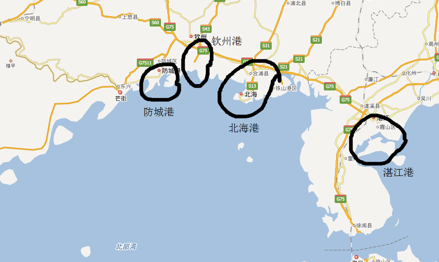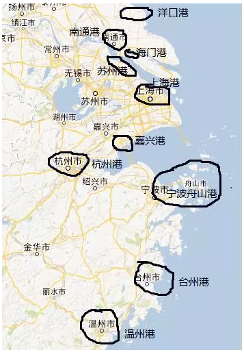 另外,這三塊區(qū)域中間還穿插著一些港口,如連云港、廈門港、防城港。