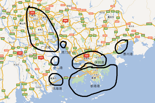 珠三角的港口群結(jié)構(gòu)差不多是以香港港為核心,深圳港和廣州港為樞紐,其他港口作為補(bǔ)充和輔助。深圳港或者廣州港即使兩項(xiàng)吞吐量指標(biāo)超過香港港也無法真正超越香港港,原因不贅述。