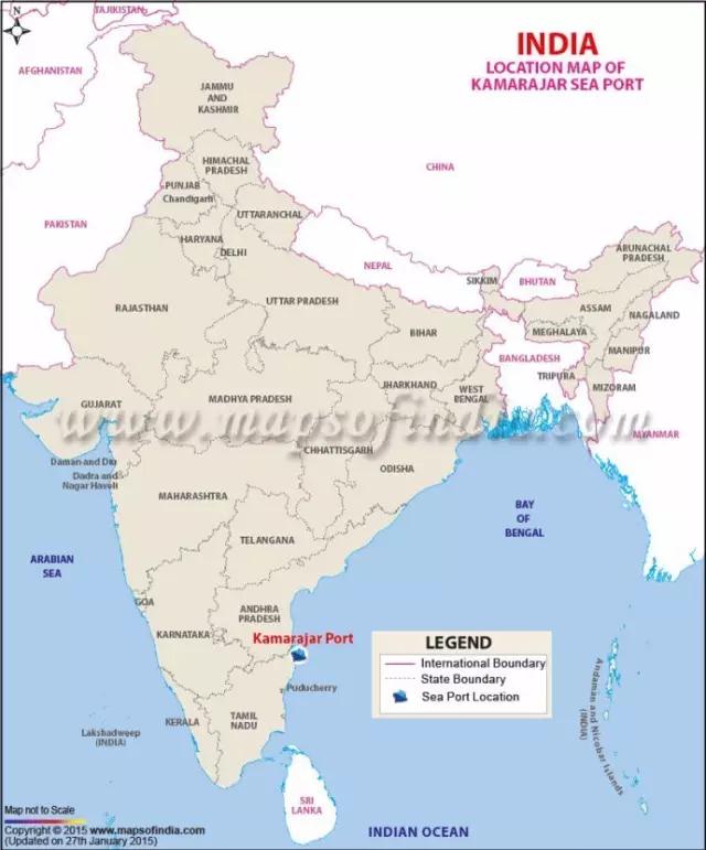 據維基百科介紹,位于印度東部港口金奈港,現已經發(fā)展成為集集裝箱、滾裝車輛、工程貨物等多種操作能力的最大港口,其主要出口鐵礦石、皮革、棉紡織品等,主要進口小麥、原棉、機械以及鋼鐵、礦石等。在2014-2015年,金奈港集裝箱的吞吐量達到155萬TEU。