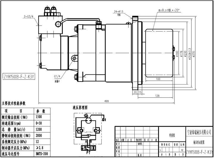 ZYH液壓回轉(zhuǎn)裝置改變了原有減速器龐大的體積和分體設(shè)計的思路,把液壓馬達(dá)、制動器、減速器、液壓控制系統(tǒng)、和輸出齒輪設(shè)計為整整體,從而具有轉(zhuǎn)速低、扭矩大、體積小、重量輕、安裝方便等特點(diǎn)。