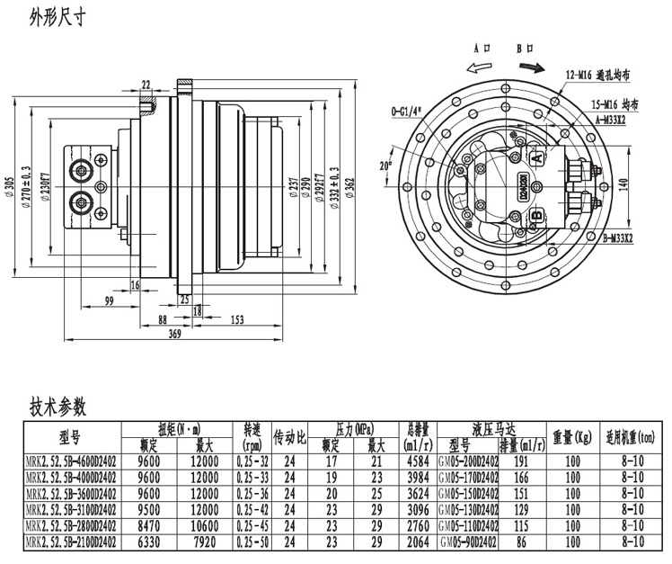 • MRK2.52.5系列履帶(車輪)行走減速機適用于小挖機載重4-6噸,鉆機6-8噸及8-10噸,輸出扭矩從6000NM—12000NM不等。采用兩級減速,使輸出扭矩加大的情況下外形尺寸更加緊湊。輸出轉(zhuǎn)速從0.25---30R/Min均勻穩(wěn)定的低速工作。